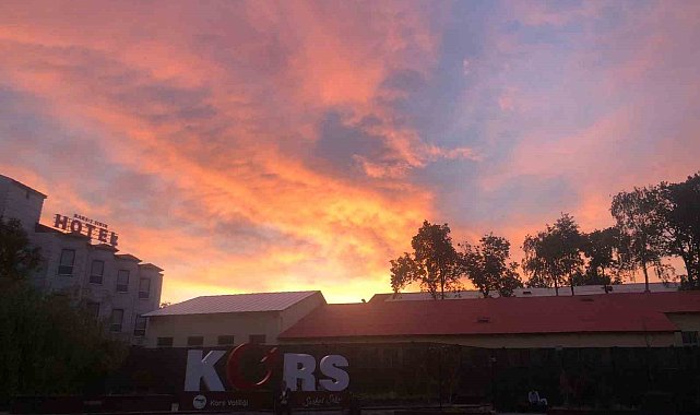 Kars'ta akşam saatlerinde kızıla bürünen gökyüzü görenleri şaşırttı.Kars'ta akşam saatlerinde gökyüzünün kızıla bürünmesi kartpostallık görüntüler ortaya çıkarırken, tarihi yapılar ve cami ile birlikte kameralara yansıdı. Vatandaşlar cep telefonlarına sarılarak anı ölümsüzleştirdi. Bulutların kızıla büründüğü görüntüler, yaklaşık 10 dakika sonra tamamen kayboldu.